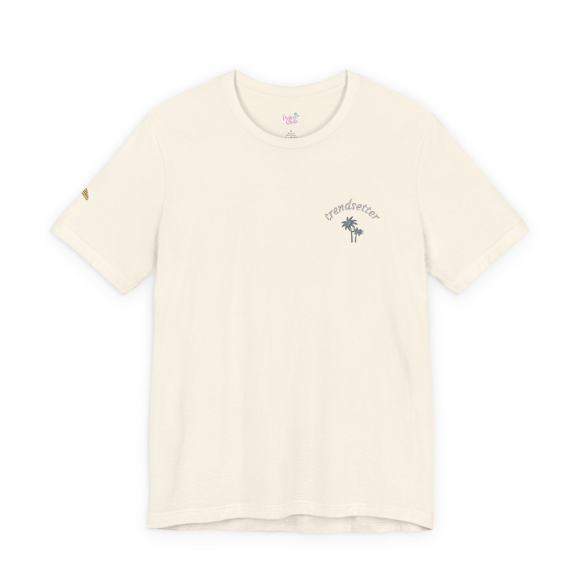 The details are where the magic is. Subtle icons at the chest and sleeve give it that quiet-cool Palm Club energy — not loud, not trying, just effortlessly cute. It’s the kind of tee that fits into real life.